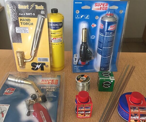 - Kits para soldadura en plata (varilla desde el 0% hasta el 15% de plata) y soldadura con estaño 95/5 - 96/4
